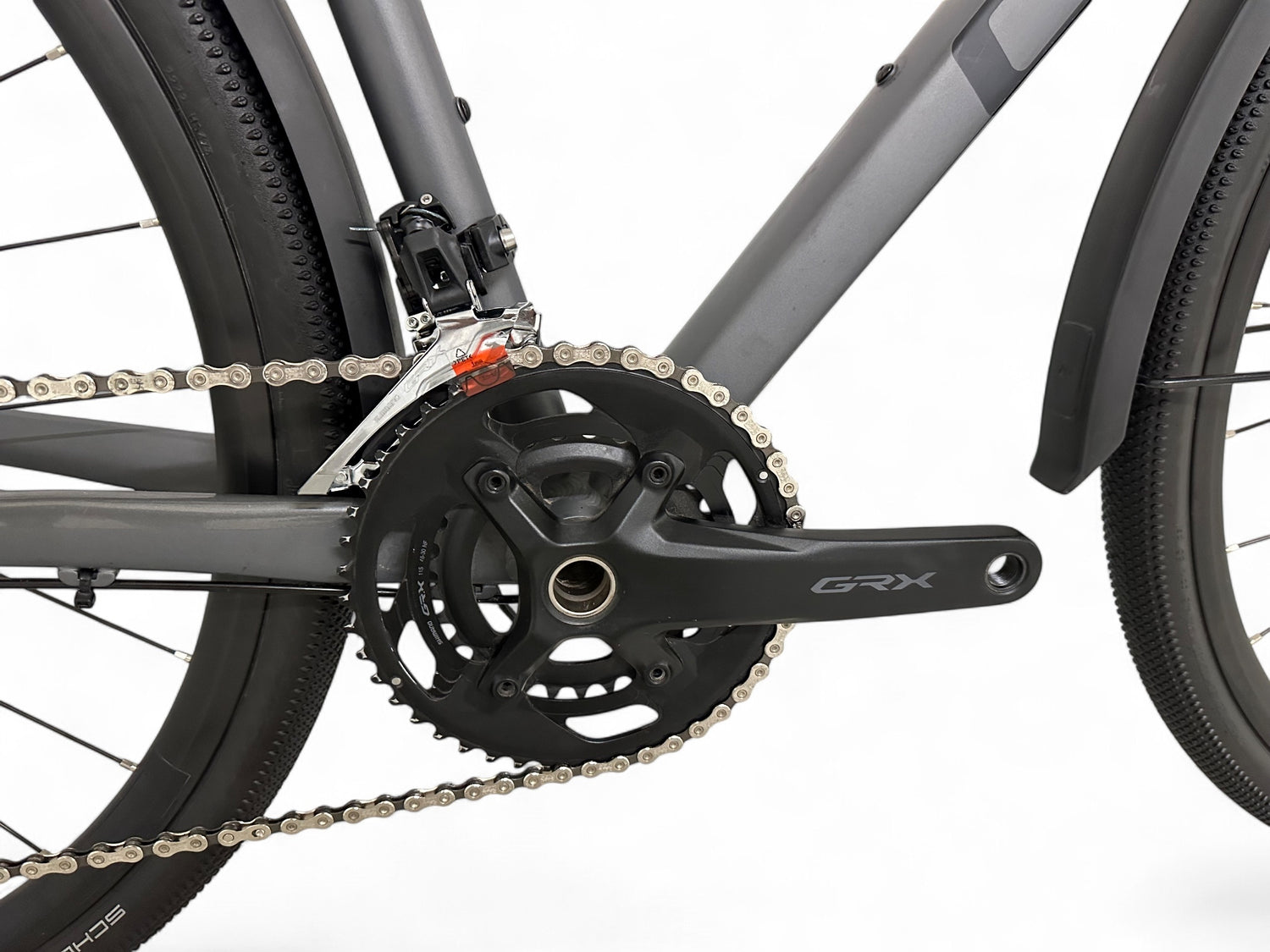 - Shimano GRX 2x11 Schaltung mit 46/30 Kurbel & 11–34 Kassette
