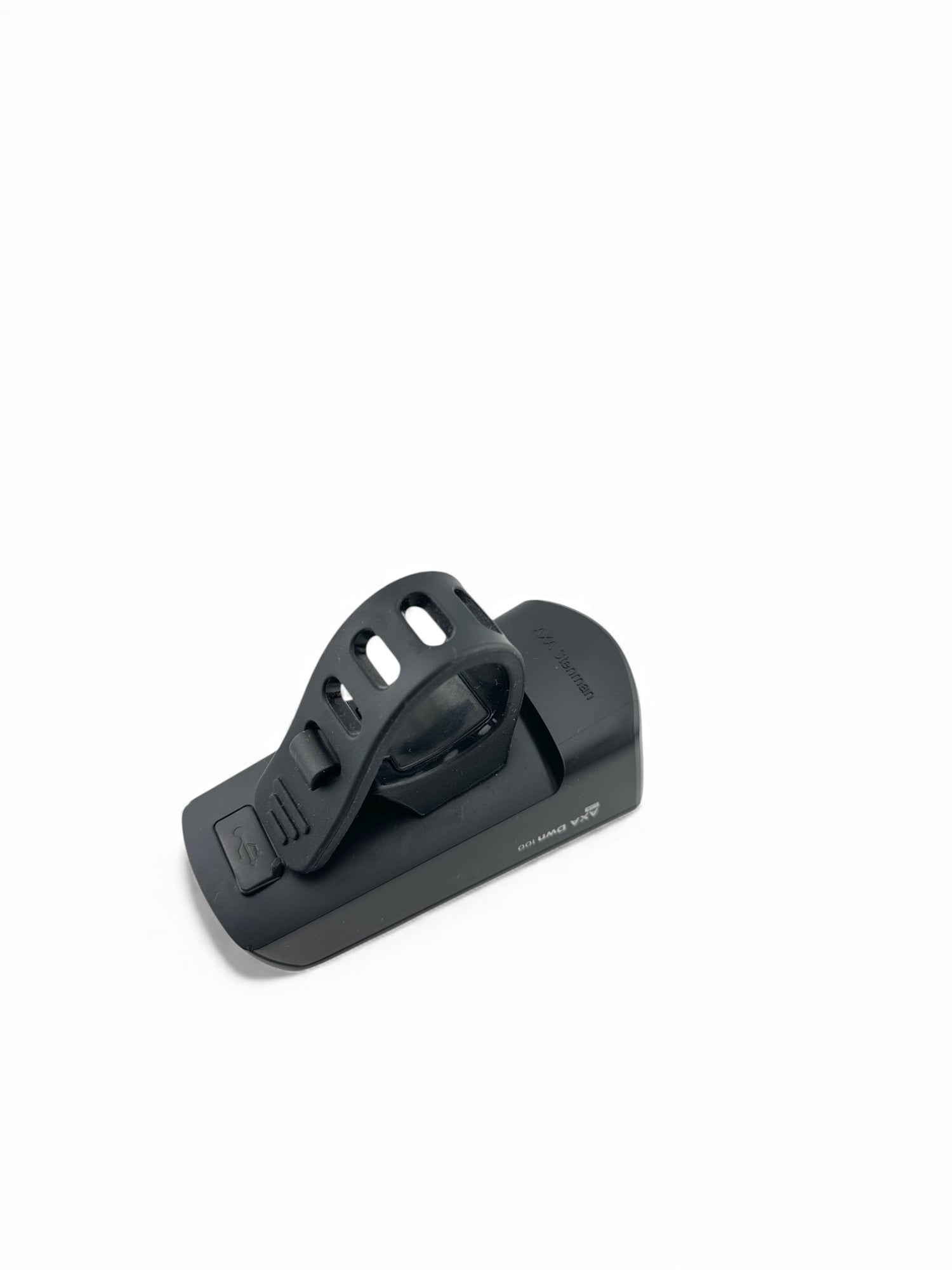 Dank des flexiblen Gummi-Befestigungsbands lässt sich der DWN 100 schnell und werkzeuglos an nahezu jedem Lenker montieren (22–35 mm Durchmesser). Ebenso einfach kann der Scheinwerfer zum Laden oder Schutz vor Diebstahl wieder abgenommen werden.