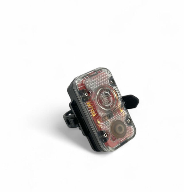Der integrierte Lithium-Ionen-Akku wird über die rückseitige Micro-USB-Ladebuchse geladen. Ein Steckerschutzverhindert das Eindringen von Staub oder Feuchtigkeit, sodass das Rücklicht auch bei Regen oder Schlamm jederzeit einsatzbereit bleibt.