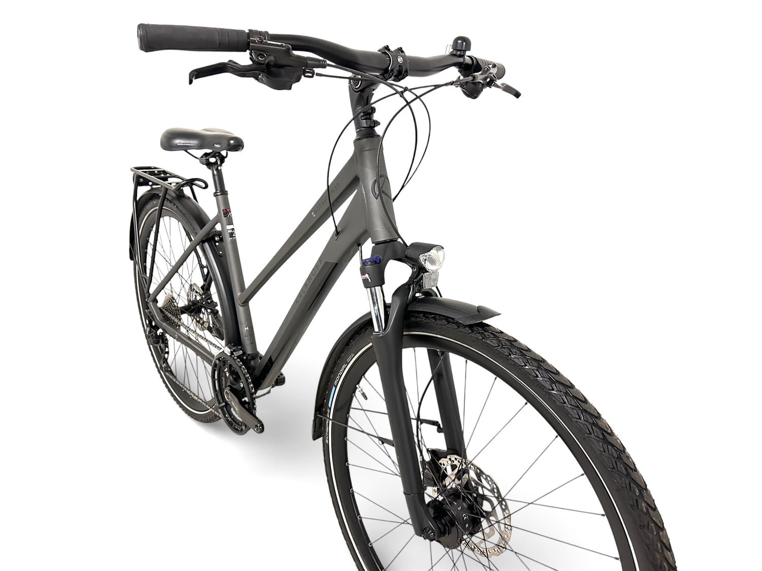 Der leichte und steife Kalkhoff Trekking 1.6 Aluminiumrahmen in Trapezform bietet eine angenehme Sitzposition und erleichtert das Auf- und Absteigen. Mit einem zulässigen Gesamtgewicht von bis zu 130 kg ist das Endeavour 30 bestens für Alltag und Reiseeinsatz gerüstet.