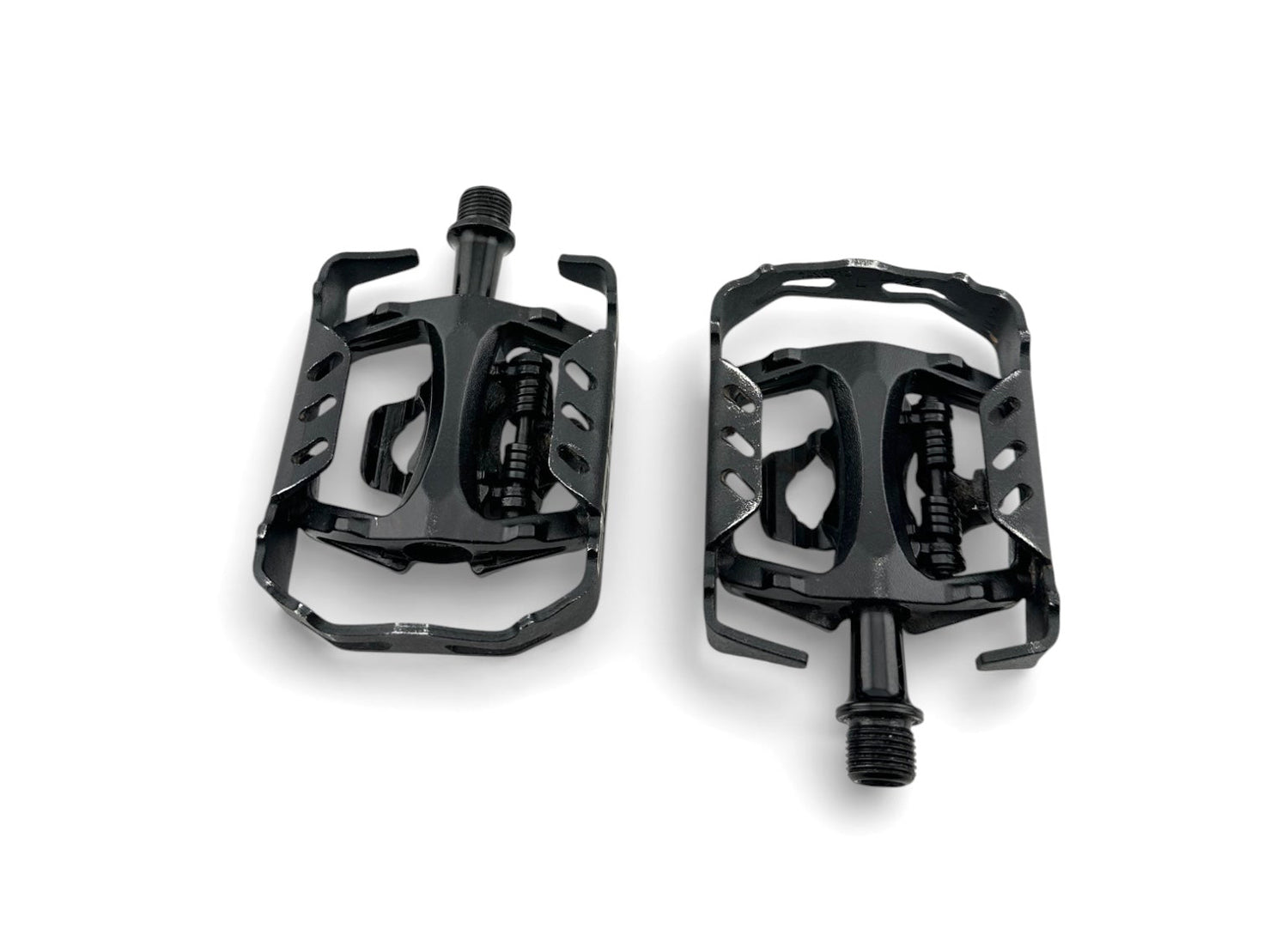 Die XPEDO Milo Klickpedale sind die ideale Lösung für alle, die im Alltag flexibel bleiben möchten. Auf der einen Seite bieten sie ein klassisches Plattformpedal für normale Straßenschuhe, auf der anderen Seite ein SPD-kompatibles Klicksystem für effizientes Pedalieren mit Radschuhen.